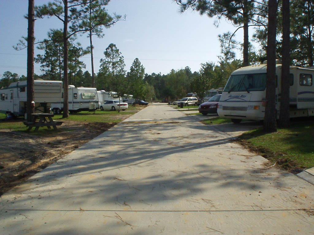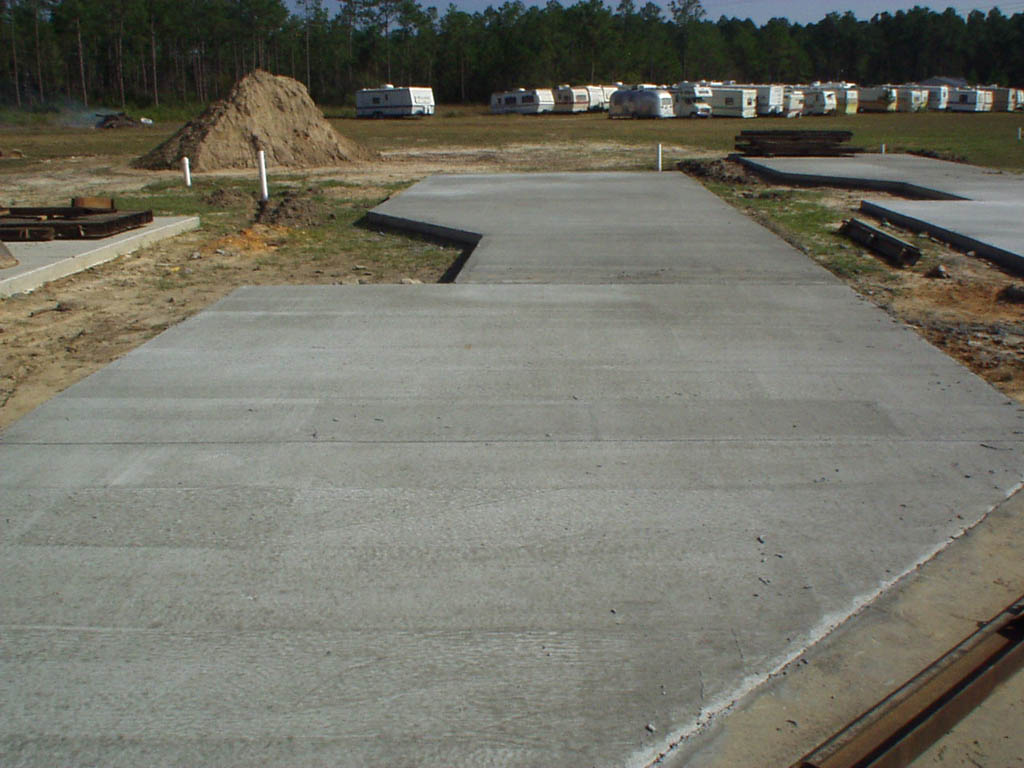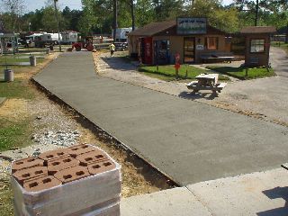 Well, we survived the hurricane. Only minor stuff like limbs down and a few leaning trees. We have finished pouring concrete for Azalea. No more dust. We will get back to Dogwood to put in a few more sites. Something new that we are doing over there is some sites with two spots for parking. Should be good for people with multiple vehicles. They will also be 50/30 amp. Sorry about the lack of updates and slow email response. Some of you know I had a baby (now 10 months) and it has put a serious cramp on my free time.