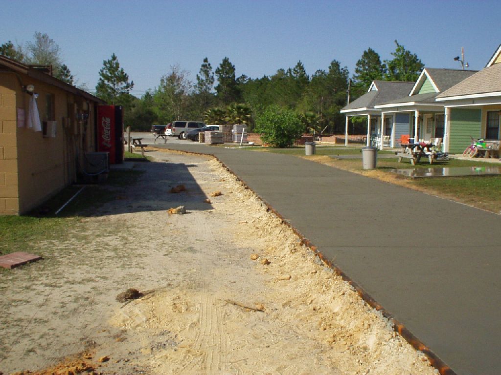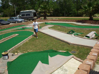 Well, we've poured a ton of concrete. The new road is now open again and the one along the beach is closed. The mini golf is going great. Sid, AJ and Bill have been working on getting the walkways finished. It's rained a lot lately but hopefully it won't slow us too much. -Jay4-04
